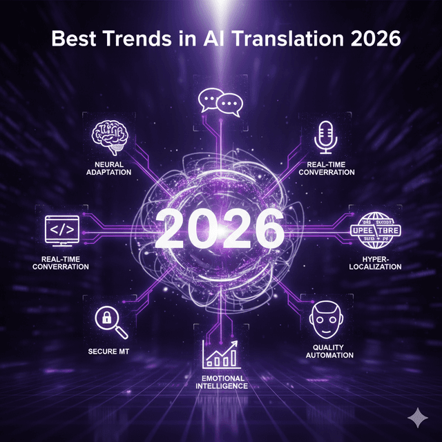 Explore the top AI translation trends for 2026, from domain-aware models and real-time speech translation to privacy shifts and human-AI collaboration, and see how to prepare your translation strategy before your competitors do.