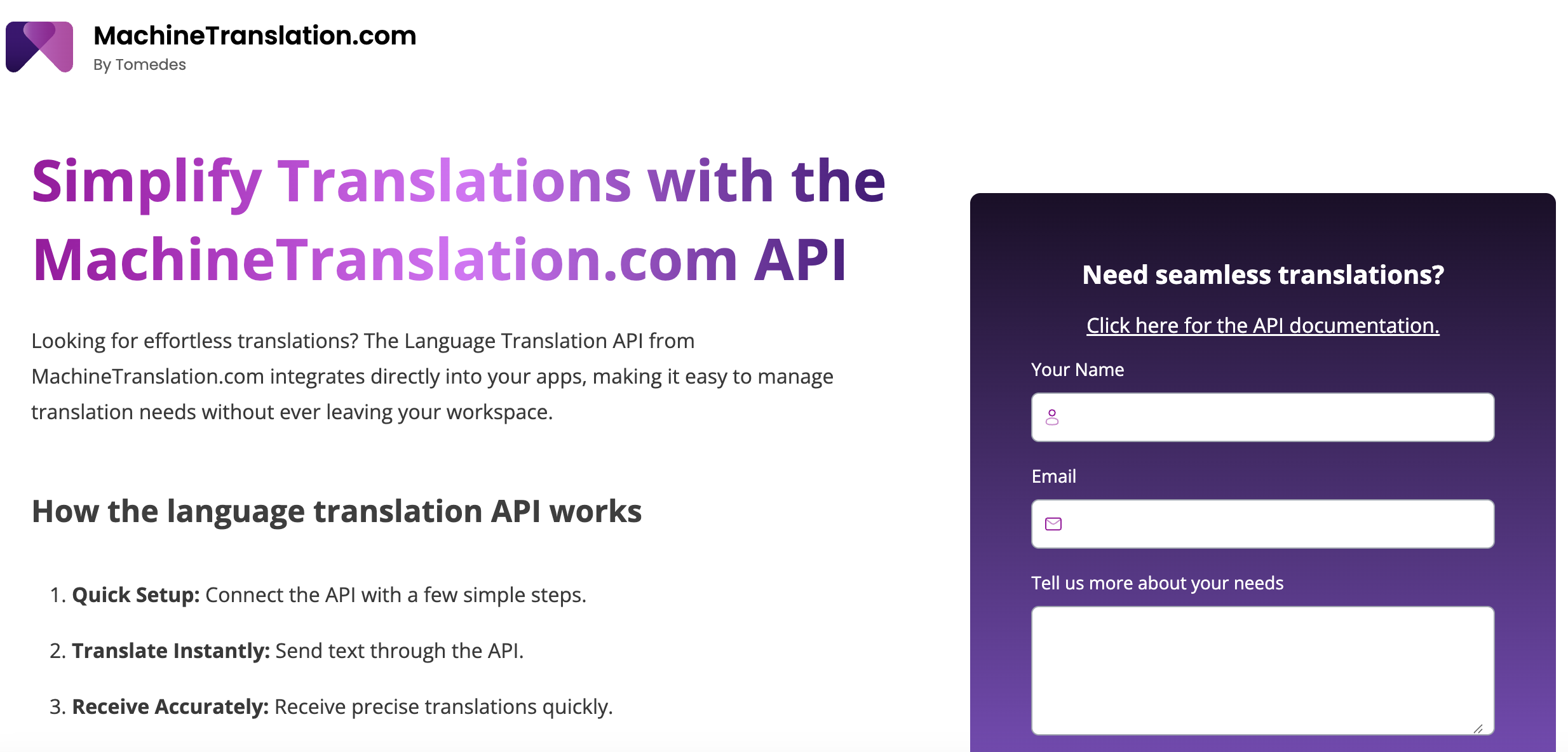 | Developer / API integration | MachineTranslation.com API or Google/DeepL API | Consensus output + quality score vs. single-model API |