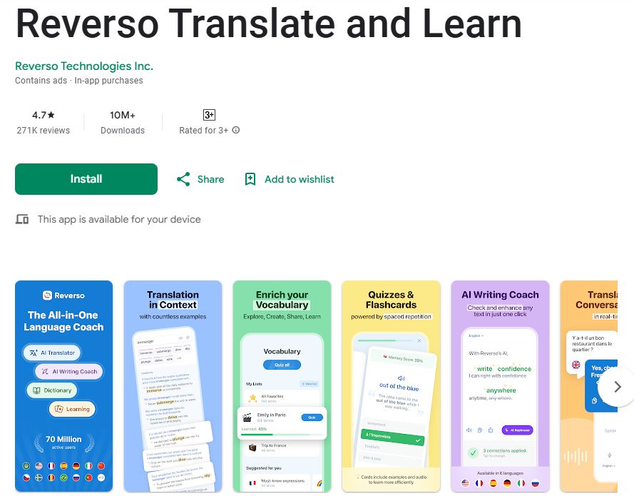 Ihanteellinen opiskelijoille ja itseopiskelijoille, Reverso tarjoaa työkaluja sanaston kasvun ja kieliopin parantamisen tueksi. Se tallentaa hakujesi historian, jotta voit tarkastella ja vahvistaa aiemmin oppimaasi. Jokaisella käyttökerralla et ainoastaan käännä, vaan myös syvennät ymmärrystäsi kielen toiminnasta.