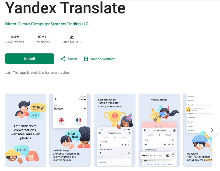 Yandex Vertalen ondersteunt meer dan 100 talen en is met name sterk in Oost-Europese talencombinaties zoals Russisch, Oekraïens en Pools. Het is nuttig voor zowel gewone gebruikers als professionals die vertalingen in deze regio's nodig hebben. Doordat de app nauwkeurig omgaat met complexe grammatica en idiomen, heeft hij een voorsprong in die taalfamilies.