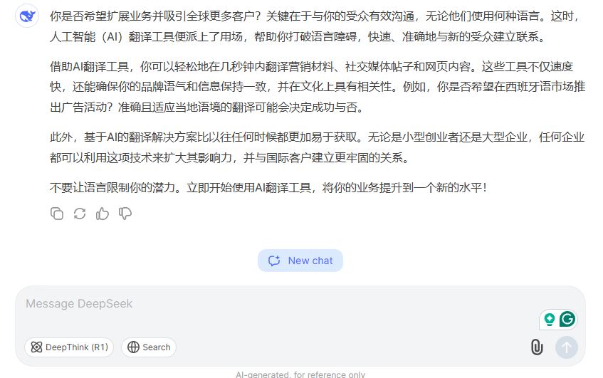 Huk ladumanta, Deepseek kachkan aswan allin estructurasqa chaymanta técnico qhatuypaq materialkunapaq, qullqi churaqpa rikuchiyninkuna utaq ruru folletokuna hina. Formalidadpi, precisión nisqapi ima enfoque kasqanqa exactitud nisqatam garantizan, ichaqa aswan creativo contextokunapim qaqa hina sientekunman. Contenidopaq maypichus tono mana ancha chaniyuqchu técnica chiqanchaymanta, Deepseek aswan kallpayuq akllana.