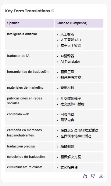 Llave término tikray ruwayqa español simikunata chino simiwan tupaqninwan tupachin mana chiqninakuyta qawarina. "inteligencia artificial" hina términokunapaq achka akllanakunata quspa, llamk'achiqkuna aswan allin tikrayta akllayta atinku. Kayqa aswanta yanapakun chino tikraykunapaq, terminología iskaynin simiman chaymanta cultura contextoman tupasqanmanta qhawaspa.