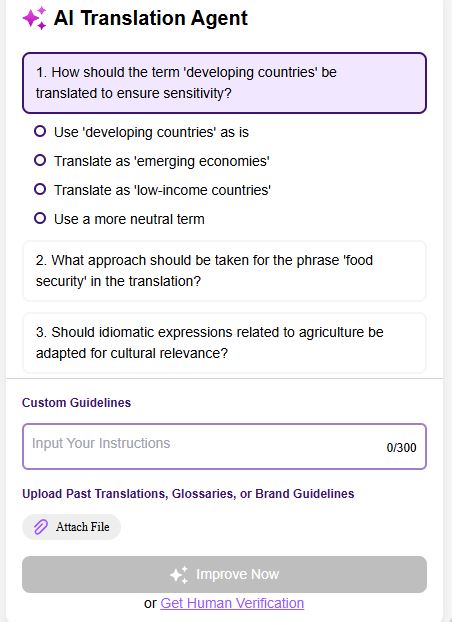 U srcu platforme je agent za prevođenje veštačke inteligencije, koji postavlja pametna pitanja za prilagođavanje tona, vokabulara i nivoa čitanja. Čak pamti i vaša prethodna podešavanja ako ste registrovani korisnik, čineći buduće prevode bržim i prilagođenijim.
