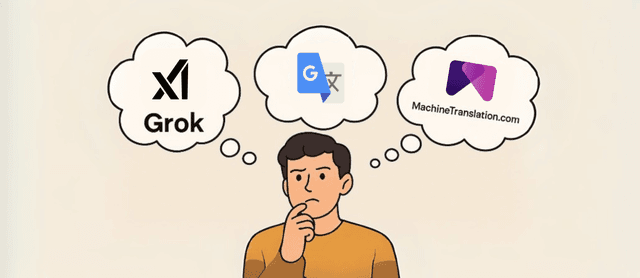 เปรียบเทียบ Grok, DeepSeek และ MachineTranslation.com เพื่อค้นหาเครื่องมือแปลภาษา AI ที่ดีที่สุดสำหรับเนื้อหา อุตสาหกรรม งบประมาณ และความต้องการในการปรับแต่งของคุณ