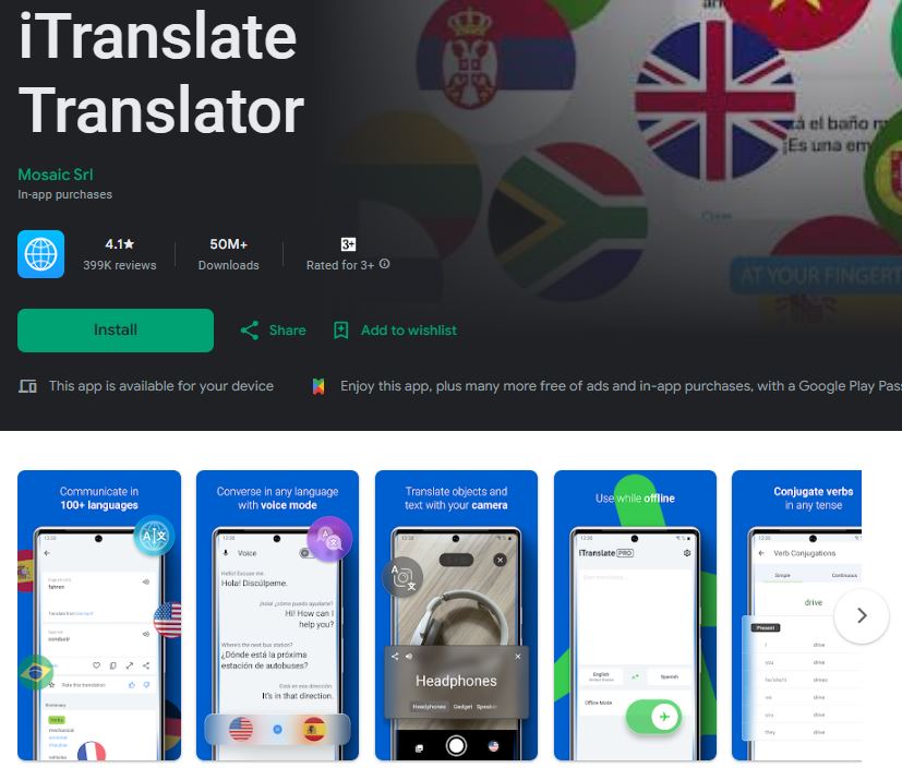 እቲ መተግበሪ ኣብ ውሽጢ ዝተሃንጸ ናይ መግለጺ መጽሓፍ እውን የጠቓልል ፣ እዚ ድማ ንተጓዓዝቲ ሓድሽ ከባቢታት ዝጐዓዙ ናይ ሓባር መግለጺታት ቅልጡፍ ተኽእሎ ይህብ ። ኣብ iOSን Androidን ክርከብ ከሎ ኣብ መላእ መሳርሒታት ተኳሃኝነት የረጋግጽ ፣ እቲ ጽሩይ ዲዛይን ድማ ንምጥቃም ቀሊል እዩ ። ንጉዕዞ ወይ ሓድሽ ቋንቋ ንምምሃር ትዳሎ እንተ ዄንካ ፡ iTranslate ኣብ ቀሊል ፓኬጅ ተደራሽ መሳርሒታት የቕርብ ።