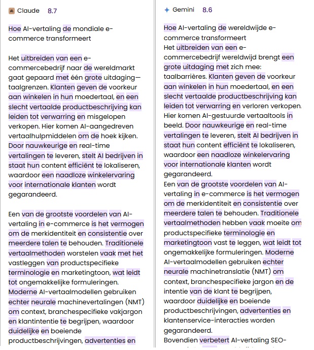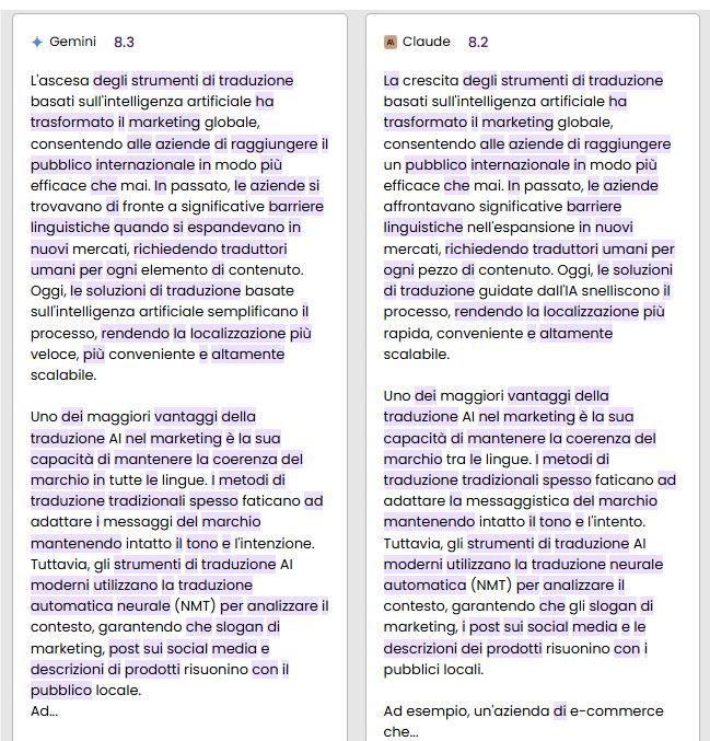 Ma nessemgarad-it d Gemini, Claude yettaf-d ugar n yiwet n tneqḍit. Mi ara t-id-tessefqed d ameqqran deg usfahem n tmenḍawt. Ma tefkiḍ-as tafyirt ɣezzifen yerna s tɣawla, ad teɛreḍ ad teḥrez anamek-is anaṣli, mačči kan ad tbeddel awalen seg tutlayt ɣer tayeḍ. Aya yerra-tt d tin yesɛan nnfeɛ ladɣa i tsuqqilin n talɣa ɣezzifen, am yiḍrisen n lqanun neɣ tasekla, anda ay tesɛa azal tɣawsa (nuance).