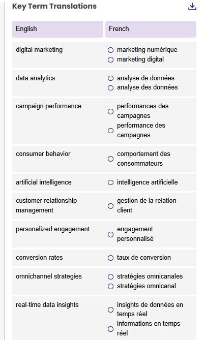 Buyekeza futhi wenze ngcono ukuhumusha usebenzisa amathuluzi okuhlela ezilimi ezimbili, Ukuhumusha Kwetemu Elibalulekile, nokuhlola amagama. Lezi zinqubo ziqinisekisa ukuhumusha okunembile okuhlangabezana namazinga ochwepheshe.